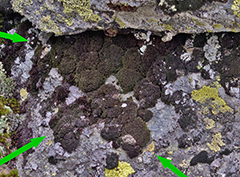 | Adineta tuberculosa; fluorescence image (excitation: 395 nm) of specimen stained with Calcofluor White to show the chitinous trophi (arrowhead) and a fungal parasite (marked by two arrows). (3) |