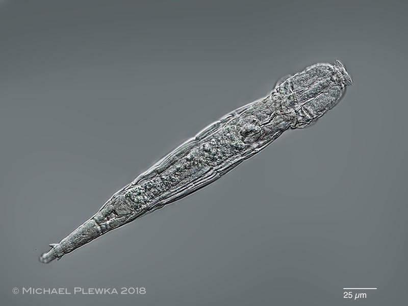 | Adineta sp. 38 cf vaga minor; gliding, dorsoventral view; spindle-shaped outline (1). |