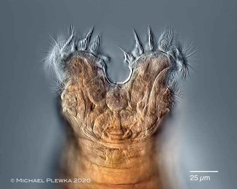 | Philodina sp. 3 cf roseola; focus plane on the bolsters between upper lip and sulcus. Length of this whirling specimen: TL: 340µm (2) |
