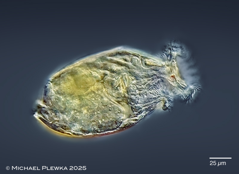 lower right: outline of the trunk with bolster left and right; focal plane also on the trophi (slightly visible). On the ventral side some cilia of the cingulum ("chin") are visible.