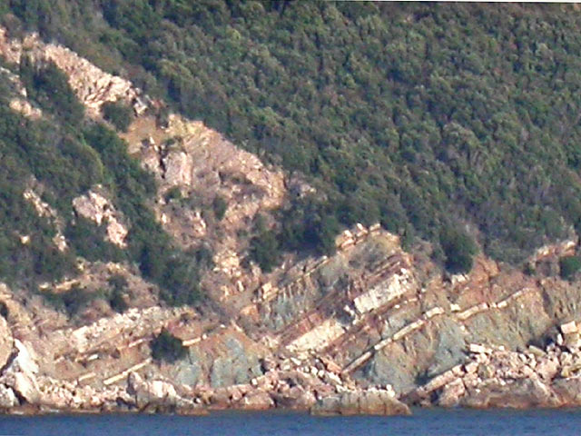 | Im weiteren Verlauf der Fahrt trifft mann auf verschiedene Schichten von Sedimentgestein, u.a. Radiolarienkalke |